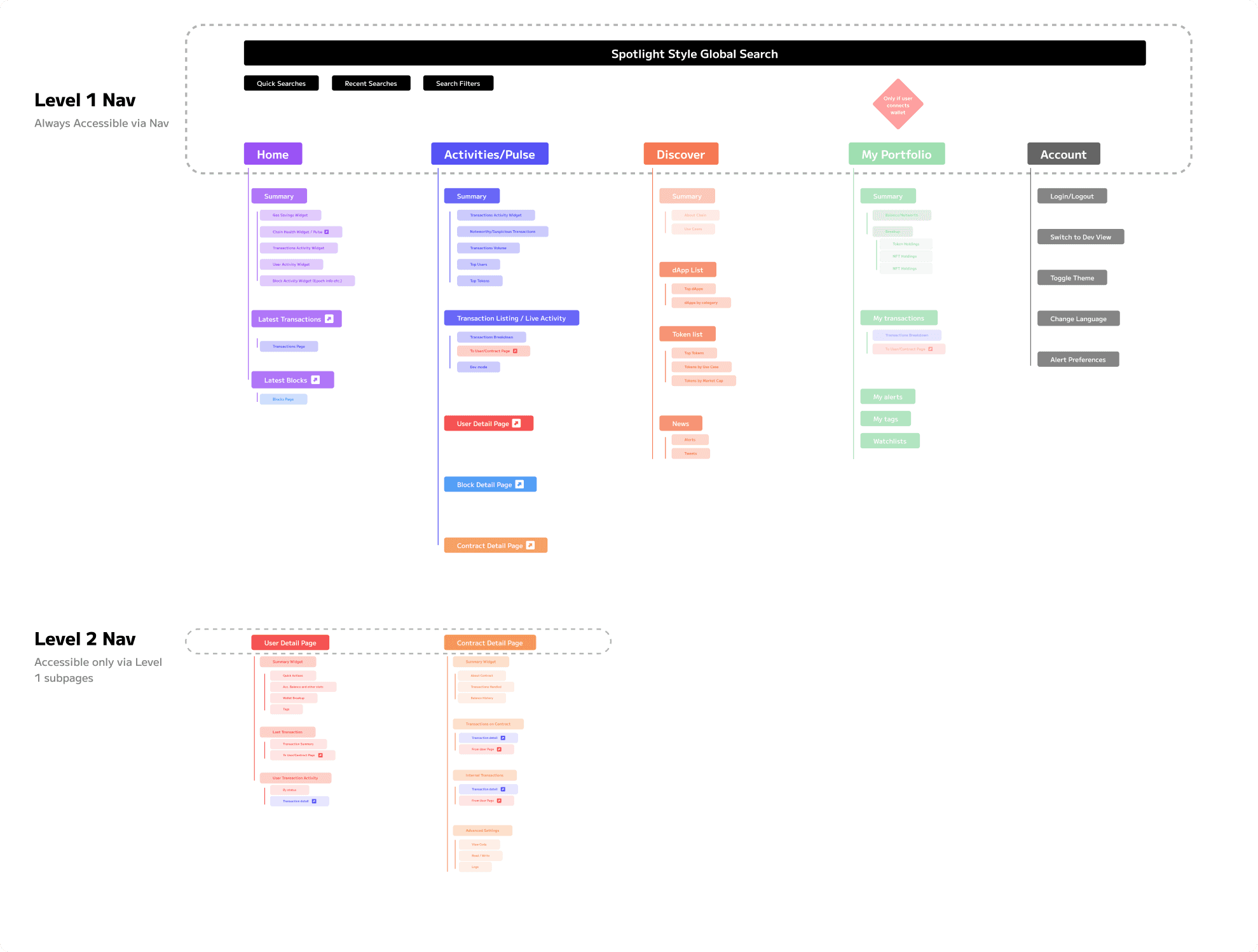 As a dynamic project, our information architecture (IA) was straightforward, concentrating on integrating distinctive elements into each module and clearly defining the objectives of each. Additionally, we swiftly mapped out existing explorers and determined our approach based on functionality rather than predefined sections.